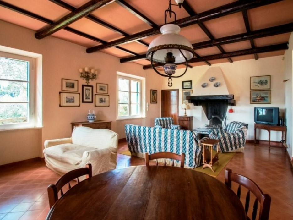 Salotto/Sala da pranzo: divani, poltrone, camino, libreria, TV Sat., DVD, zona pranzo